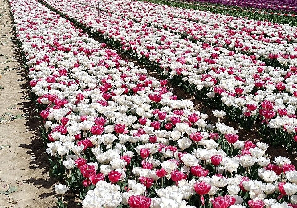 Les mythiques champs de tulipes en fleurs sont à découvrir sur une parcelle autorisée au public.